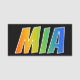 Dieser Spaß, vibrierende, mehrfarbige NamensschildAusrüstungsbeschreibungen der allgemeine Vorname "MIA", mit den Buchstaben des Namens, der ein buntes Regenbogenspektrum hat, mögen Steigungsfarbtonmuster, auf einem Schwarzes farbigen Hintergrund. Ein Nametag so würde von einem Angestellten, von einem Belegschaftsmitglied oder von einem Freiwilligen, dessen Name Mia ist getragen möglicherweise, um zu helfen, den Träger zu den Kunden oder zu anderen Leuten zu identifizieren. [~Z0000344]