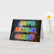 Dieses lustige, lebendige, mehrfarbige Geburtstagskarten-Design zeigt die Botschaft "HAPPY BIRTHDAY" und den gemeinsamen Vornamen "SHAWN" mit den Buchstaben, die ein farbenfrohes Regenbogenspektrum wie Farbverlauf haben. Der Hintergrund der Vorderseite weist auch ein farbenfrohes Muster auf, das durch das Aussehen von berstenden feierlichen Feuerwerken inspiriert wird. Im Inneren befindet sich eine personalisierte Begrüßungsnachricht, oder man könnte sie löschen und leer verlassen werden, wenn eine Nachricht von Hand geschrieben werden soll. Eine Geburtstagskarte wie diese könnte Spaß machen, jemandem namens Shawn zum Geburtstag zu schenken. [~Z0000350]