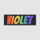 Dieses lustige, lebendige, mehrfarbige Namensschild-Design hat den gemeinsamen Vornamen "VIOLET", wobei die Buchstaben des Namens ein farbenfrohes Regenbogenspektrum wie Farbverlaufsmuster auf schwarzem Hintergrund haben. Ein solches Namensschild könnte von einem Mitarbeiter, einem Mitarbeiter oder einem Freiwilligen getragen werden, dessen Vorname Violet ist, um anderen zu helfen, den Träger zu identifizieren. [~Z0000344]
