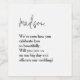 Mit diesem personalisierten Weinflaschenlabel können Sie Ihre Fragen an Ihren Beamten richten und eine herzliche Nachricht an Sie richten, um Ihren besonderen Tag zu begehen. Dieses elegante Design ist perfekt geeignet, um einem bereits denkwürdigen Angebot eine durchdachte, kreative Touch hinzuzufügen. Es lässt sich mit dem Namen und den persönlichen Details individuell gestalten. Ein einzigartiger Weg, um die Person zu feiern, die Sie durch Ihre Gelübde führen wird, sodass sie sich wirklich geschätzt und geschätzt fühlen.