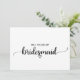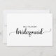 Diese einfache schwarze Kalligrafie Bridesmaid Vorschlagskarte ist perfekt für eine rustikale oder moderne Themenhochzeit. Das minimalistische Design besticht durch einen eleganten Schriftart mit Pinselskripten und ein reizendes Frauenherz. Der Rücken ist leer, sodass Sie genug Platz haben, um eine nachdenkliche personalisierte Nachricht zu schreiben.