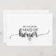 Diese schlichte schwarze Kalligraphie-Trauzeugin-Angebotskarte ist perfekt für eine rustikale oder moderne Themenhochzeit. Das minimalistische Design besticht durch einen eleganten Schriftart mit Pinselskripten und ein reizendes Frauenherz. Der Rücken ist leer, sodass Sie genug Platz haben, um eine durchdachte personalisierte Notiz zu schreiben.