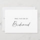 Elegante kalligraphische Postkarte mit einem Vorschlag einer Braut ist perfekt für eine moderne Hochzeit. Romantisches minimalistisches Design mit schöner und eleganter schwarzer Typografie auf weißem Hintergrund mit einem sauberen und einfachen Aussehen. Passen Sie die Postkarte an. Personalisieren Sie die Rückseite der Postkarte mit einer personalisierten Nachricht.
