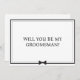 Ihren Trauzeuge zu Ihrer Hochzeitsfeier fragen war noch nie stilvoller. Unsere minimalistisch gestaltete Trauzeuge-Vorschlagskarte ist ideal für alle, die klassisches Design mit moderner Touch schätzen. Mit einer knackigen Schwarzweiß-Farbpalette und einem ausgeklügelten Bowtie-Detail verleiht diese Karte Ihrem Angebot an Hochzeitsfeiern eine zeitlose Eleganz. Ideal für den Bräutigam, der Dinge einfach und dennoch sinnvoll behalte. Passen Sie die Namen an, um Ihren besonderen Augenblick noch persönlicher zu gestalten. Egal ob Sie eine formelle Veranstaltung planen oder etwas Verlassenes, diese Karte passt zu jedem Anlass. Ihre Trauzeugen werden den durchdachten, maßgeschneiderten Ansatz Liebe geben.