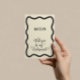 Mit dieser schicken Karte mit einem schwarzen, wellenförmigen Rahmen auf einem natürlichen Hintergrund können Sie die Frage an Ihre Brautmädchen Pop. Die perfekt kombinierte moderne Ästhetik mit Retro-Vibes sind eine elegante und herzliche Art, Ihre nächsten Freunde zu einem unvergesslichen Aufenthalt einzuladen. | Klicken Sie auf "Dieses Design personalisieren", um Ihre Daten hinzuzufügen. | Die passenden Hochzeitsgeschenke, Brautparty Accessoires und Junggeselinnen-Abschied-Must-Haves stehen zur Verfügung. Bitte schicken Sie uns eine Nachricht mit Fragen oder um Sonderanfertigungen anzufordern. | Das Kunstwerk in dieser Sammlung wurde für den Gebrauch auf Produkten zum Verkauf lizenziert. Der Ersteller kann Elemente verwendet haben, die mit KI generiert wurden.