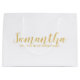 Vorschlag von Bridesmaid | Moderne Script White und Gold Geschenktasche mit dem personalisierten Namen der Brautjungfrau in modernem, goldfarbenem Schriftart auf weißem Hintergrund. Auch perfekt für Trauzeugin, Blume Mädchen, Trauzeuge, Trauzeuge und Klingelträger. Bitte beachten Sie: Die Details der Folie werden im Kunstwerk simuliert. Bei der Herstellung dieses Produktes wird keine Folie verwendet.