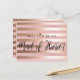 Einfache elegante Trauzeugin Vorschlag Postcard. Design mit Pinselskript '' Trauzeugin'' auf einer Rose Gold Glitzer und Streifen Hintergrund. Fügen Sie Ihre Nachricht auf der Rückseite dieser Postkarte hinzu. Um die Vorlage zu bearbeiten, klicken Sie auf Weitere Anpassung.