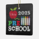 Feiern Sie das große Jahr Ihres kleinen Schülers mit diesem personalisierten Weihnachtsschmuck "Vorschule 2025"! Dieser quadratische Keramikschmuck zeigt ein farbenfrohes Design im Kreidetafel-Stil mit einem leuchtend roten Apfel, Regenbogen-Wachsmalkreiden und fetten Buchstaben, die "VORSCHULE" buchstabieren. Das Highlight? Der Apfel ist individuell anpassbar mit dem Namen Ihres Kindes, was dieses Erinnerungsstück besonders macht.