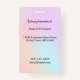 Ein pastellfarbener Regenbogen-hübscher Vorschullehrer-Lehrer-Foto-ID-Abzeichen für den Unterricht, damit die Schüler ihren phantastischen Vorschullehrer ohne Maske lächeln sehen können. Benutzerdefinierte Text-Vorlagen für Lehrername, Schule, enthält auch personalisierte Bildvorlage, sodass Sie leicht Ihr eigenes Foto hinzufügen können. Die Rückseite hat Platz für eine Adresse, Telefonnummer und E-Mail-Adresse. Hübscher Regenbogen einiegorn holografischer Hintergrund.