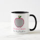 Diese Tasse für Lehrer kennzeichnet eine Illustration eines grauen Ginghamapfels mit rosa Ordnung.  Rosa und schwarzer Text kann besonders angefertigt werden.  Tasse verfügbar in anderen Farben und in Arten.