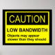 Dieses gelbe Warnzeichen mit niedriger Bandbreite warnt, dass "Objekte langsamer erscheinen können als sie sollten." Das ist der Effekt, dass es nicht genug Leitungsgeschwindigkeit oder Netzwerkgeschwindigkeit gibt. Alles auf dem Computerbildschirm nimmt sich langsam auf, um zu beheben. Und wieder, einige Ihrer Mitarbeiter sind vielleicht auch von der geringen Bandbreite und scheinen auch in Zeitlupe zu sein.