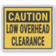 Vorsicht bei geringer Overhead-Clearance Aufkleber