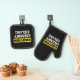 Fun schwarzer Ofen Mitt und Topfhalter mit einem Warnschild Sprichwort CAUTION CRANKY CELIAC. Perfekte Geschenkidee für Celiacs.