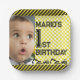Niedliche & lustige 1. Geburtstagszeitung Teller mit einem Warnzeichen mit moderner Typografie. Ersetzen Sie einfach Ihre Veranstaltungsdetails und das Foto des Babys auf dieser Vorlage.