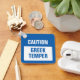 Witziges Warnzeichen. Benutzerdefinierte Hintergrundfarbe. Zwei benutzerdefinierte Textfelder für Titel und Nachricht. Benutzerdefinierter Text auf der Rückseite.