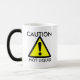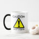 Eine Vorsichtmitteilung und -symbol erscheint, wenn eine heiße Flüssigkeit innerhalb dieser Tasse ist.