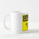 Ein vorsichtiges, rutschsicheres Schild auf gelb. Dieses Design sieht auf dieser Tasse wirklich effektiv aus
