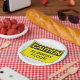 Ein vorsichtiges, rutschsicheres Schild auf gelb. Dieses Design wirkt auf diese Paper-Teller sehr effektiv
