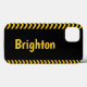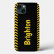 Personalisieren Sie dieses Warnzeichen iPhone Gehäuse mit Ihrem Nachnamen auf der Vorderseite. Die Farben sind leicht zu sehen.