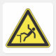 Ein Vorsichtsschild, das Fußgänger eindämmt und eine Person umfällt. Dieses Design sieht auf diesen Aufklebern wirklich effektiv aus