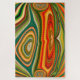 Dieses abstrakte Bild ist ein lebhafter Farbenwirbel mit einer Mischung aus Grüntönen, Orangen, Rot, Gelb und Braun. Die Muster erinnern an fließende, fließende Bewegungen, die eine Bio, fast psychedelische Wirkung erzeugen. Das Bild hat ein dynamisches, wirbelndes Erscheinungsbild, mit ovalen, zentrierten Formen und abgerundeten Linien, die ein Gefühl von Tiefe und Bewegung schaffen. Schwierigkeitsstufe 1-10: 7