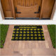 Schwarze Türmatte mit einem sich wiederholenden Biogefährdung-Symbolmuster und anpassbarem Bar in hellgelb.