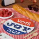 Vote Joy 2024 Harris Walz Pappteller