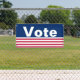 Die Oberseite ist ein blaues Feld, das in weißen Buchstaben 'Abstimmung' bedeutet. Rote und weiße Streifen sind unten.