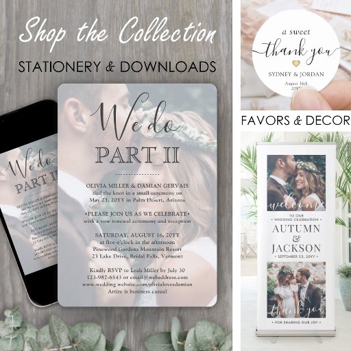 Laden Sie Familie und Freunde ein, um zu sehen, wie Sie "I do" mit einer eleganten, modernen 7-Foto-Collage versprechen Erneuerungsfeier einladen. Sämtliche Formulierungen sind für jede Art von Ehefeiern, wie z.B. eine Ehefeier oder ein Jubiläumsfeier, einfach zu personalisieren. Passen Sie Ihre Wunschdetails an, wie z.B. das Ehedatum, die uAwg, den Kleidercode, die Website usw. (IMAGE PLACEMENT TIP: Ein einfacher Weg, ein Foto genau so zu zentrieren, wie Sie gewollt haben, ist es, es einzuschneiden, bevor Sie es auf die Zazzle-Website hochladen.) Das moderne minimalistische Schwarz-Weiß-Design umfasst sieben Bilder des Paares, eine trendige handgeschriebene Skriptkalligraphie und eine schicke Schreibmaschinentypografie. Egal, ob Sie aufgrund der Kokospanidemie entstanden sind oder auf eine kleinere, intimere Minimonie oder Mikrohochzeit reduziert werden, das Glück nach dem Party kann immer noch beginnen. Herzlichen Glückwunsch an die Braut und Bräutigam!