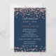 Elegante Einladungs-Karte für Hochzeiten Vow Verlängerung mit Rose Gold Imitate Glitzer Confetti Navy Blue . Ideal für feierliche Hochzeiten und Veranstaltungen.