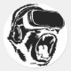 Funny Gorilla mit virtuellem Reality Headset und Kopfhörer.