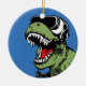 Lustiges T-rex mit Realitätskopfhörer und -kopfhörer.