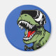 Funny T-rex mit Virtual-Reality-Headset und Kopfhörer.