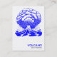 Eine Visitenkartenvorlage mit originalem Stift und farbiger Abbildung eines ausbrechenden Vulkans mit schwindendem Rauch, Asche, aus dem Himmel regnenden Kugeln aus geschmolzenem Gestein und heißen Lavaflüssen. Auch einige Bäume und ein besorgtes Haus.