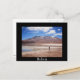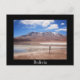 Postkarte eines schneebedeckten Vulkans mit einem Flamingosee und Gefahrenschild in der Wüstenlandschaft nahe San Pedro de Atacama am Altiplano an der Grenze zwischen Bolivien und Chile mit schwarzer Grenze und dem Text: "Bolivien".