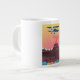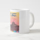 Ein Vintages blaues Propellerflugzeug, das tief über einem Vulkan fliegt.