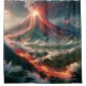Ein majestätischer Vulkanausbruch dominiert die Szene, mit einer pulsierenden roten Lava, die die Hänge hinabfließt und einem Rauchwolken, der in den Himmel strömt. Die umliegende Landschaft ist von üppiger Vegetation geprägt und steht im Kontrast zu den heftigen Ausbrüchen.