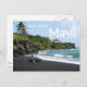 Postkarte eines schwarzen vulkanischen Sandstrandes im Waianapanapa Staat Park entlang der berühmten Straße nach Hana auf der tropischen Insel Maui, Hawaii, USA mit dem Text: "Liebe von Maui".