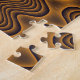 Dieses phantastische Rätsel weist ein abstraktes Muster von braunen und goldgelben Wellen auf, die an einen feurigen unter Wasser stehenden Vulkan erinnern, der Wellen brennenden Lavas in den Ozean sprießt.