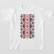 Ukrainische nationale Stickerei Druck auf T - Shirt. Klassische ukrainische Rot-und Schwarz-Ornament. Ukrainische Krieger, die legendären Kozaks, trugen diese Stickerei. Sei tapfer wie Ukrainisch! Stehen Sie mit der Ukraine.