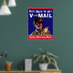 Dieses Vintage Poster aus dem Zweiten Weltkrieg enthält einen lächelnden amerikanischen G.I., der einen Brief von Zuhause liest. Es heißt: "Er wird sicher V-Mail bekommen — Safest Overseas Mail — Army Postal Service." Feiern Sie mit diesem digital restaurierten Vintagen Kriegsposter aus dem The War Is Hell Store die amerikanische und die WW2-Geschichte. Woll mehr Militär- und Geschichtsprodukte? Karo