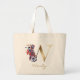 W Letter Gold Monogram Red White Lila Floral Jumbo Stoffbeutel