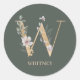 Letter W monogramm floral. Letter W in goldbrauner Textur mit grünen Aquarellfarben Blätter, Blume Blüten und Goldstaub. Personalisiert mit Namen in passendem Schriftart.