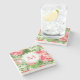 Personalisierter Untersetzer aus Stein: Klassisches und feines, nahtloses Muster, bestehend aus Blume aus rotem Hibiskus und Blätter auf hellem Hintergrund. Maßgeschneidertes Monogramm in weißer Rundform. Passendes Gepäck, Gepäckanhänger und mehr... Vergessen Sie nicht die ganze Sammlung von Blume Muster und Monogramm.