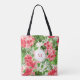 Personalisiertes, komplett bedrucktes Totbeutel: Klassisches und feines, nahtloses Muster mit Blume und Blätter aus rotem Hibiskus auf blassem Hintergrund. Benutzerdefiniertes Monogramm im weißen Kreis enthalten. Vergessen Sie nicht die ganze Sammlung von Blume Muster und Monogramm.