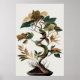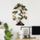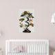 Wabi-Sabi Kunst eines wunderschön detaillierten Baumes mit wirbelnden Ästen und einer Vielzahl von grünen und goldenen Blätter, die elegant vor einem neutralen Hintergrund stehend sind. Die Blätter zeigen eine Farbenmischung und fügen der Komposition eine interessante Note hinzu.