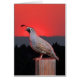 Wenn ein Wachteln Covey herumsucht, wird man häufig auf einem hohen Platz gehockt, der Uhr für Gefahr behält. Diese Wachtel tat Wachpostenaufgabe, während der Covey in der Nähe herumsuchte. Wachteln und Sonnenuntergang fotografierten separat in Siskiyou County, die zusammenpassenden Porto-Briefmarken CA, die auf diesem Standort verfügbar sind.
