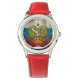 Kinderuhr aus Edelstahl mit rotem Lederarmband