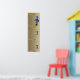 Puppen markieren das Wachstum von Kindern. Hund für 3-2 Fuß, Katze für 2-3 Fuß und Baseballspieler von 1 bis 5 Fuß. Messen Sie das Wachstum des Kindes vor beigefarbenem Hintergrund. Gelbe Linien auf 2 Metern (Maß vom Boden), 1,50 m, 4 m und 5 m. Zwischen Linien als 1,2,3,4,5,6,7,8,9,0,1,2 (gelbe Linie) markierte Zoll.