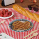 Papierplatte mit einer Waffel aus dem Staat von Texas. Text lautet: Zu jeder Tageszeit. Es ist immer Zeit für Waffeln